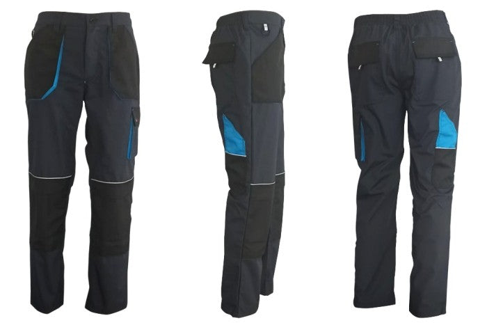 The plain weave fabric does not shrink and is extremely wear-resistant. Fabric: 320 g/m 2 . Functional pockets.